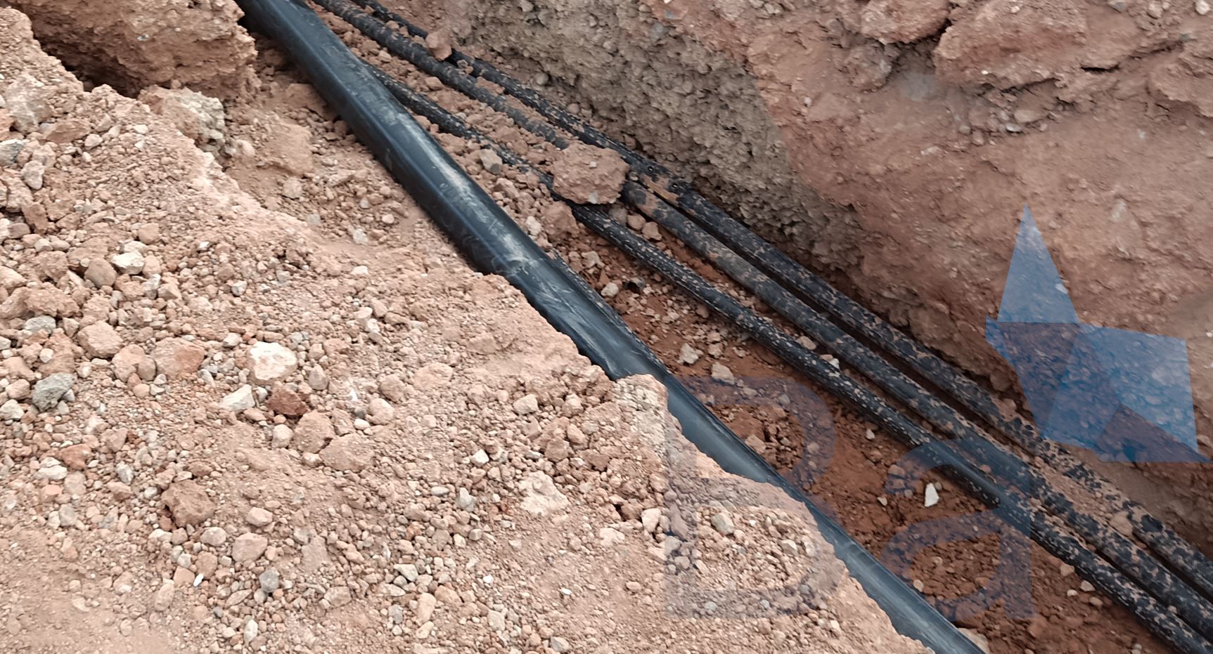 In summary, to execute these conduits: first, the trench is excavated to the desired level. Then, manholes are distributed at distances of no more than 40 m or at changes of direction. Next, the corrugated polyethylene conduits are placed, and concrete bedding is poured. Finally, the cables are passed through these conduits from one manhole to another.